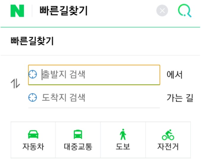 스마트폰으로 이용하신다면 현재 위치를 출발지로 설정할 수 있습니다. 왼쪽의 동그라미 아이콘을 클릭하면 현재 위치로 설정이 가능합니다.